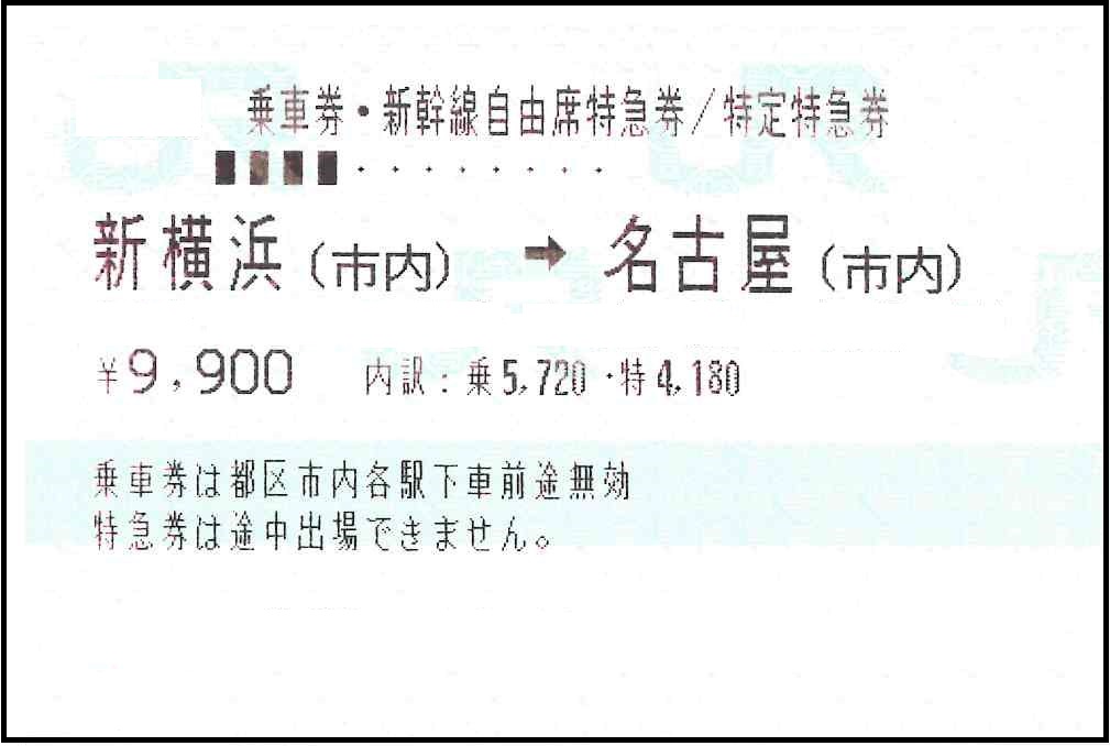 【特価販売!】東海道新幹線 新横浜(横浜市内)➡ 名古屋(市内)自由席10枚セット【@9200】(商品説明欄を参照ください)販売価格(税込): ¥ 92,000 通常価格(税込):¥ 99,000 |