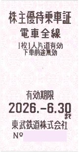 東武鉄道 株主優待券 50枚セット≪有効期限:2026年6月30日まで≫【@700】販売価格(税込): ¥ 35,000 |