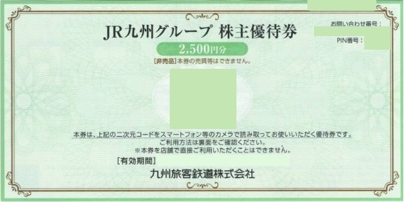 JR九州グループ株主優待券(額面 2500円)≪有効期限:2026年6月30日まで≫販売価格(税込): ¥ 1,500 |